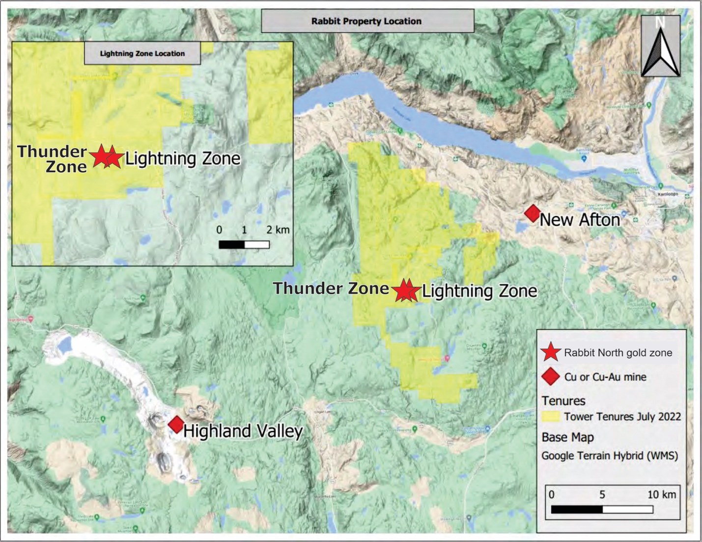 Vancouver, British Columbia--(Newsfile Corp. - May 31, 2023) - Tower Resources Ltd. (TSXV: TWR) ("Tower" or the "Company") is pleased to announce the commencement of a focused ground magnetic survey on the Company's Rabbit North property near Kamloops, British Columbia, between New Gold's New Afton underground Cu-Au mine and Teck's Highland Valley open pit Cu-Mo mine (see Fig. 1).