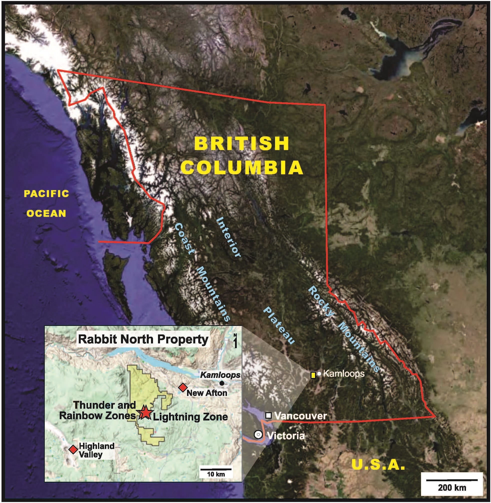 Vancouver, British Columbia--(Newsfile Corp. - January 18, 2024) - Tower Resources Ltd. (TSXV: TWR) ("Tower" or the "Company") is pleased to report the results of the first follow-up diamond drill holes on the newly discovered Rainbow porphyry Cu-Au-Mo zone (two holes) and younger, shear-hosted Thunder Au zone (two holes) on its Rabbit North property in the heart of the Kamloops mining district (see Fig. 1).